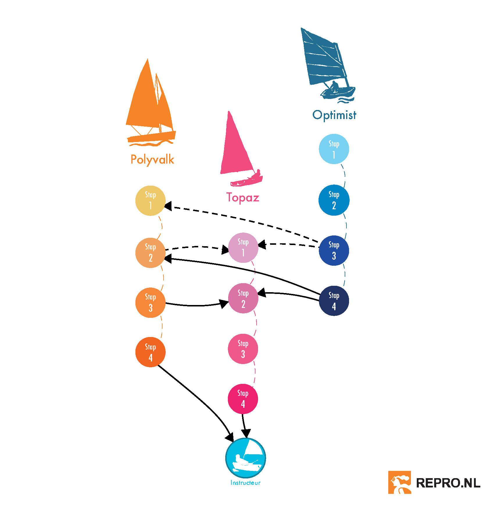 Watersport Centrum Vlietland wanted to create a new diploma system for the children who follow a course with them. Preferably to look as playful as possible. I designed and create a folder with eyelets on the cover to give it a sailor experience. The pages and the folder are kept together by a ring in the corner where the children can hang all kinds of things such as sailing ropes. Stickers were designed as well to retaliate the diploma.